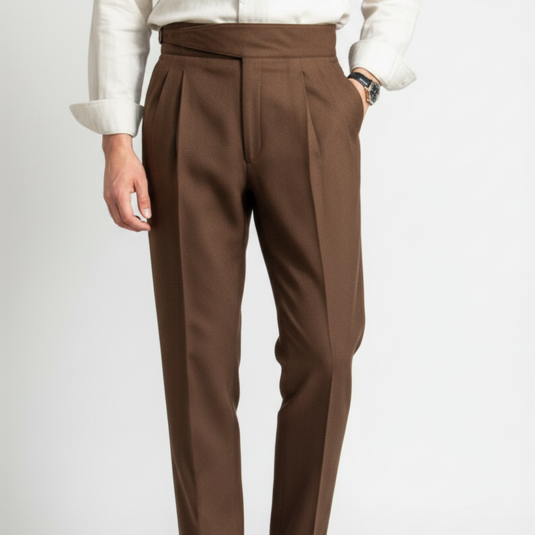 מכנסי Trento משדרים את האלגנטיות המעודנת של התפירה האיטלקית. בגזרה ישרה עם מותן גבוהה וסגירה צדית באבזם, הם מציעים איזון מושלם בין קלאסיות לנינוחות. בעיצוב על־זמני שמתאים גם ליום יומי מוקפד וגם למראה ערב אלגנטי, הם משתלבים בצורה טבעית עם חולצת פולו או סריג דק למראה איטלקי נקי ומדויק.
